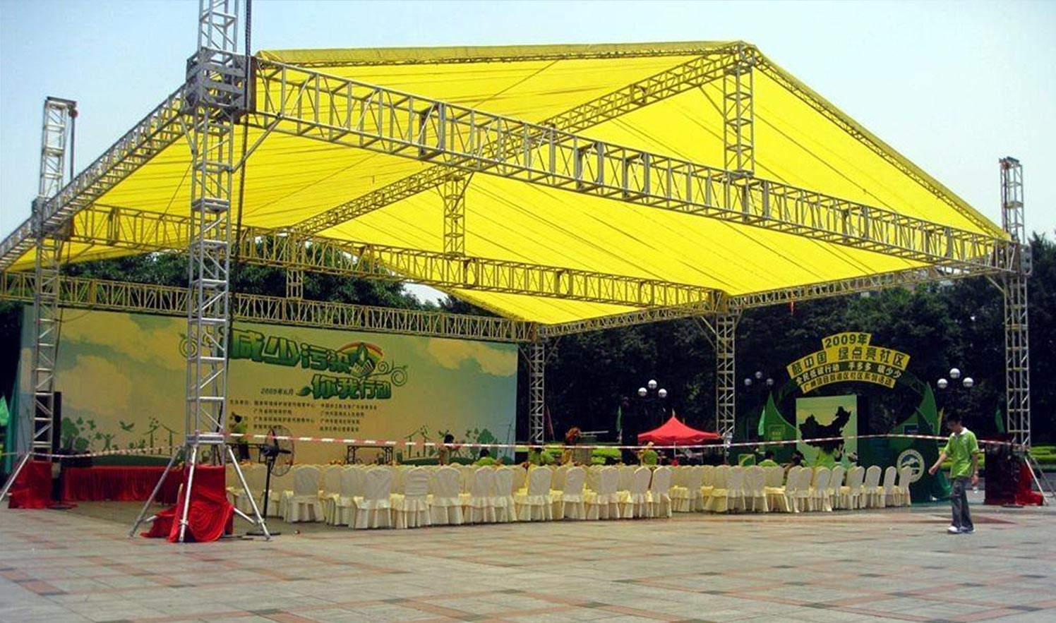 The company is located in Guangzhou City, Guangdong Province, which is a production base for performance equipment, lighting and audio. Is a comprehensive manufacturer integrating professional design, research and development, production and sales, trusses, background frames, display frames, scaffolding, aluminum alloy stage, lifting stage, Rhea stage, bar table and chairs, anti-riot bar, chorus table, banquet Hall engineering customization and other products can be customized and designed according to customer review requirements. These professional equipment can be widely used in various performances, exhibitions, weddings and various celebrations. You are welcome to consult at any time and look forward to cooperating with you!